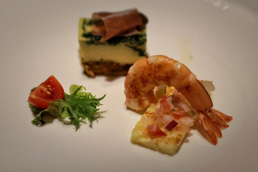 這份熱前菜的登場,主要是增加主廚與賓客的互動,主廚會熱情細心的介紹嚴選食材且用最簡單的方式來料理食材。Ann超喜歡鹹派的口感,貪吃到把榜哥的那一份也直接入口。