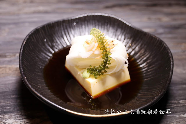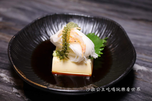 師傅手作豆腐,吃起來口感細緻,上頭鋪上現刨山藥、肥美櫻花蝦,有海中界魚子醬之稱的海葡萄,真的很少見,咬在口中有啵啵啵的感覺