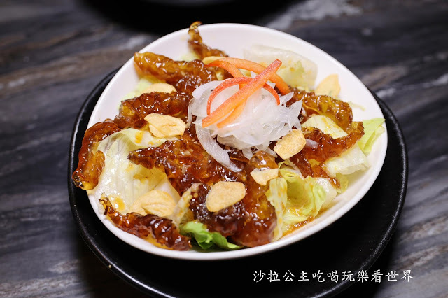 冰涼帶有Q勁的魚皮,搭配底下嚴選脆口的生菜,是一道很棒的開胃菜,而且份量十足,可以兩個人分食