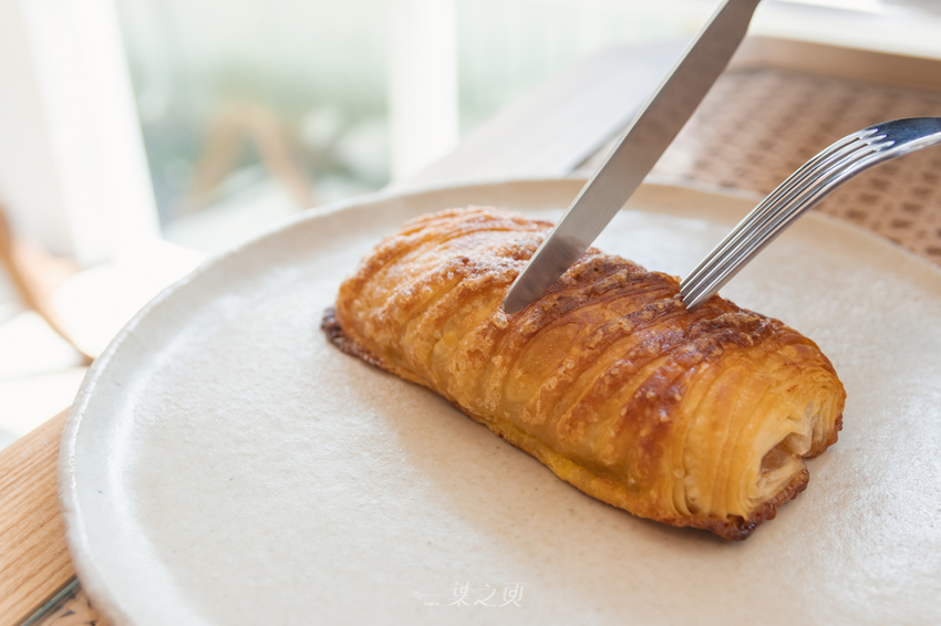 不只酥脆的外皮,內裡的蘋果餡煮得真好,蘋果餡不甜膩或是黏口,帶著酸楚、咀嚼時飄至鼻腔的蘋果香氣,和著外層脆皮的奶油香氣一併入喉,對於甜食的需求立刻獲得滿足。