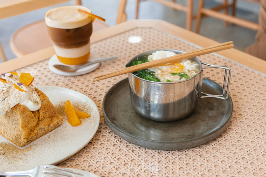 登山者泡麵算是有明心的一點小貼心吧,早早上山的登山客們,在下山時找了咖啡廳稍作休息,有時候總會想吃些鹹食填填肚子,其實登山者泡麵就是統一肉燥麵,打了蛋、加了青菜,最家常的那種。