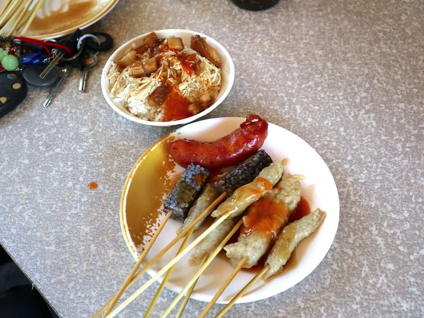 我個人最愛黑輪和米血,一串兩元,吃個五串,也才十塊錢!