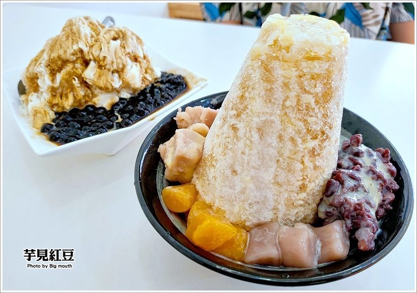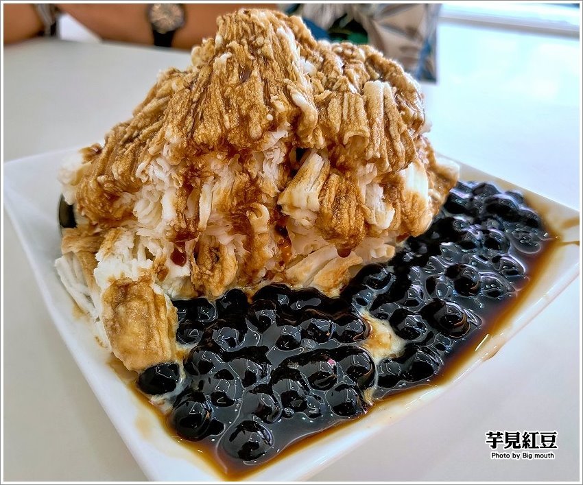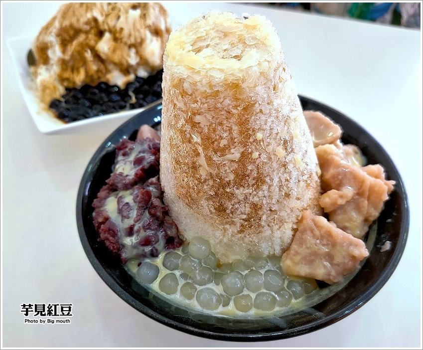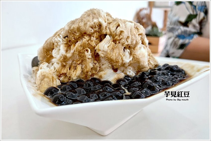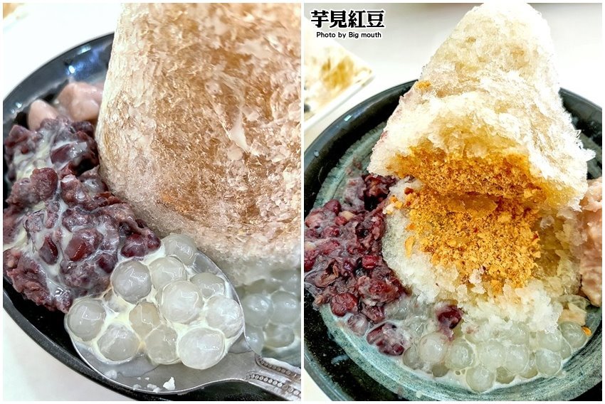 ▼芋見紅豆,也是店家的招牌創意冰品,一上桌就讓我們驚呼連連,中間的剉冰像是小山般的高塔,據說中間還藏有配料,看起來超有畫面的啦!