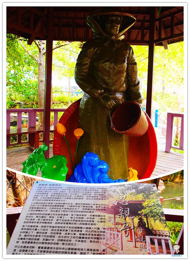 思親亭內除了台一農場創辦人母親的塑像,還有文字說明牌