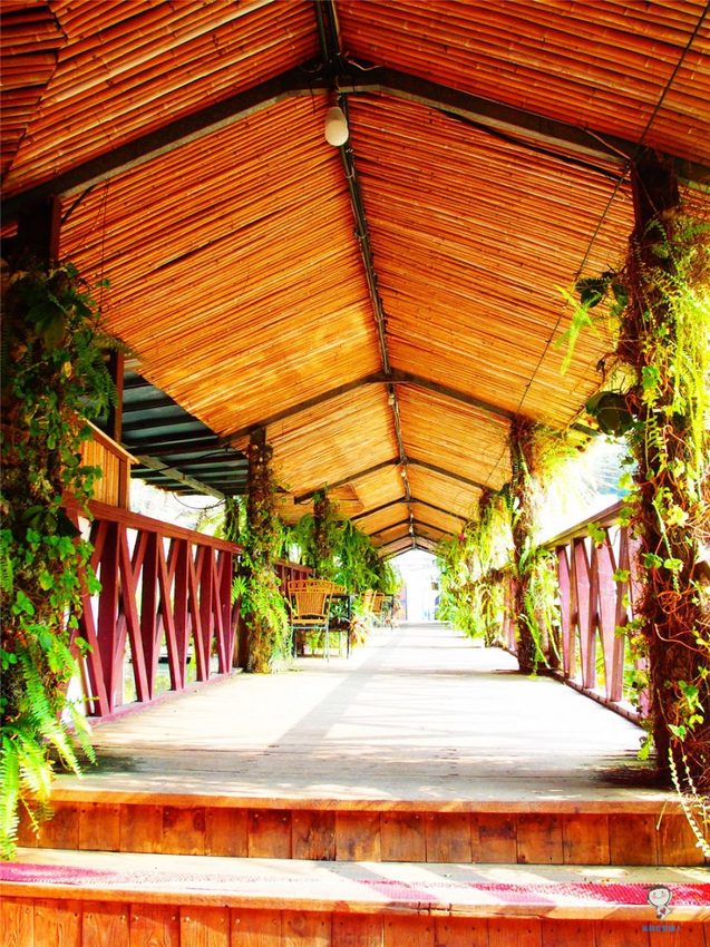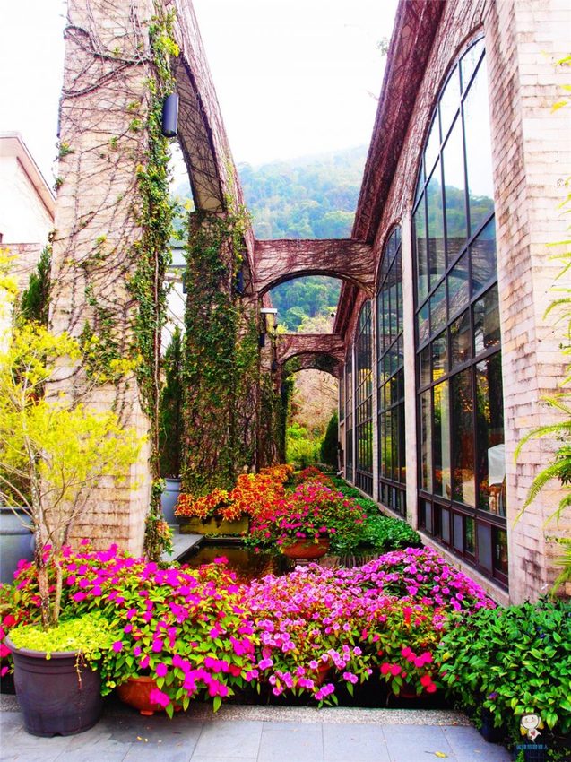 這個角度拍過去剛好可看到爬滿石柱的藤蔓和各色盆栽,感覺特別漂亮