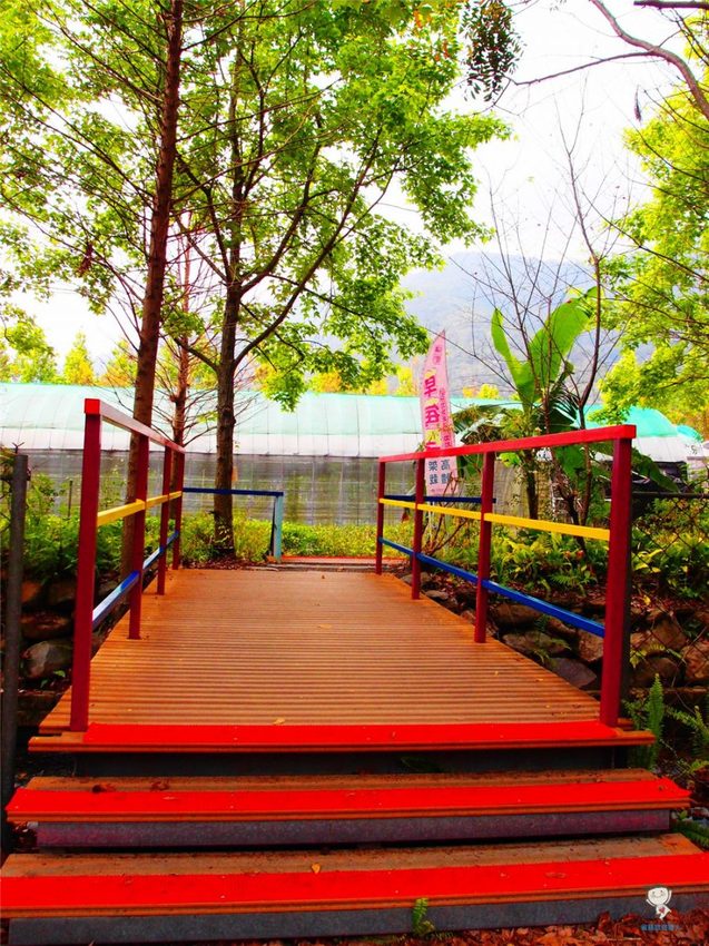 原來走過七彩木橋就能通往愛情果園,台一的果園面積不小,保證可以採到歪腰