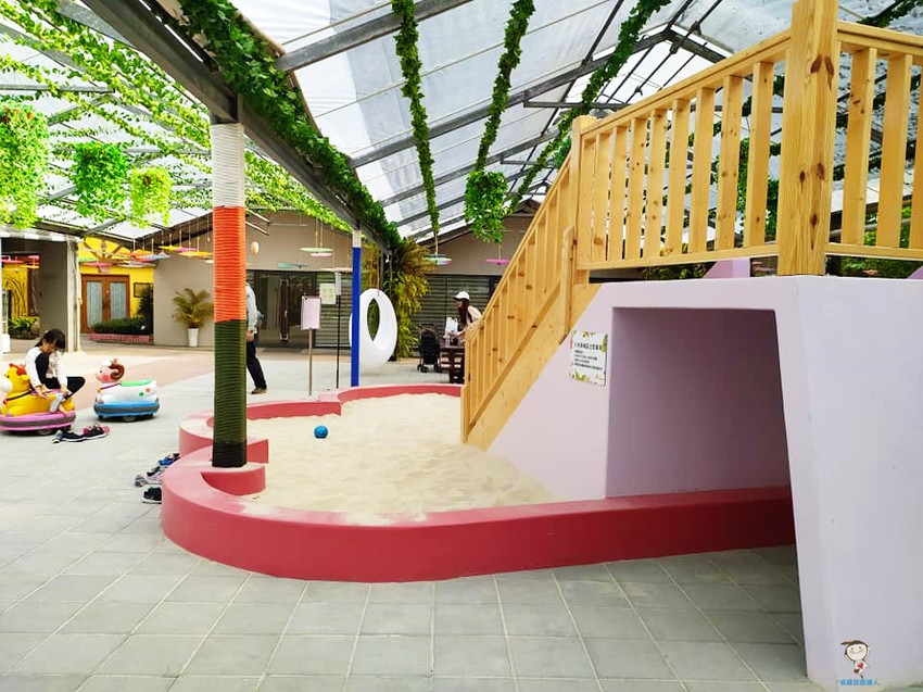 除了有溜滑梯,沙坑可以讓小朋友玩,還有動物小車可以騎乘