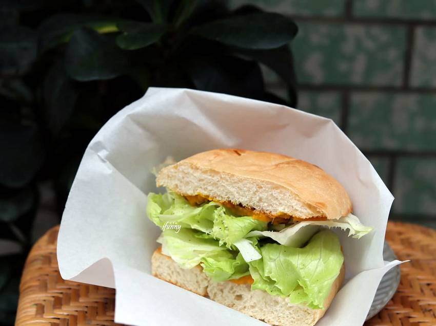 菜菜朝食目前提供四種口味的三明治,可惜想吃的<鷹嘴豆咖哩>沒有了,但幸好有店內招牌<白酒炒菇>。