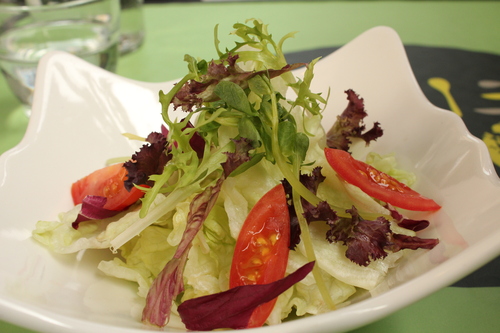 當然這樣的理念也貫徹在他們家的沙拉上,他們家的沙拉,淋的是油醋醬,而不向一般義式料理店,使用凱薩或和風醬。微酸的口感,很醒胃,好吃!