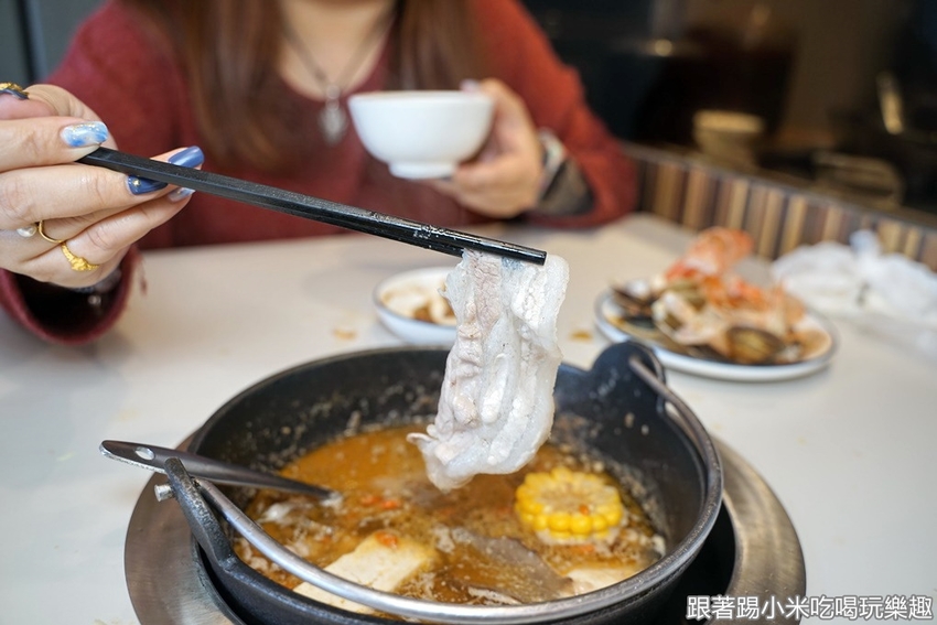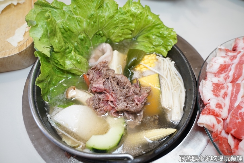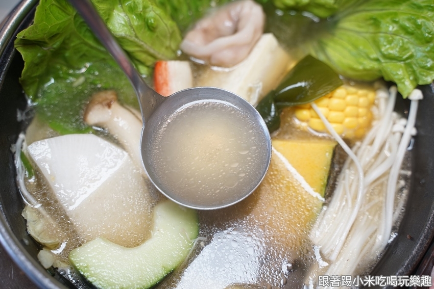 小米強烈建議石頭火鍋就是要放滿滿的料,看起來就有圍爐熱鬧的感覺,湯頭清甜的食材香氣,加入蔬果類繼續煮,可是越煮越甜的,吃起來並不會死鹹