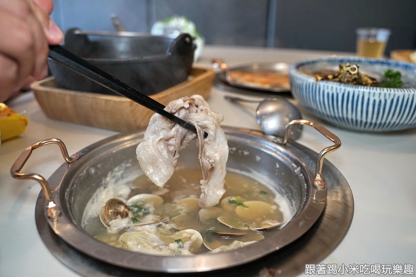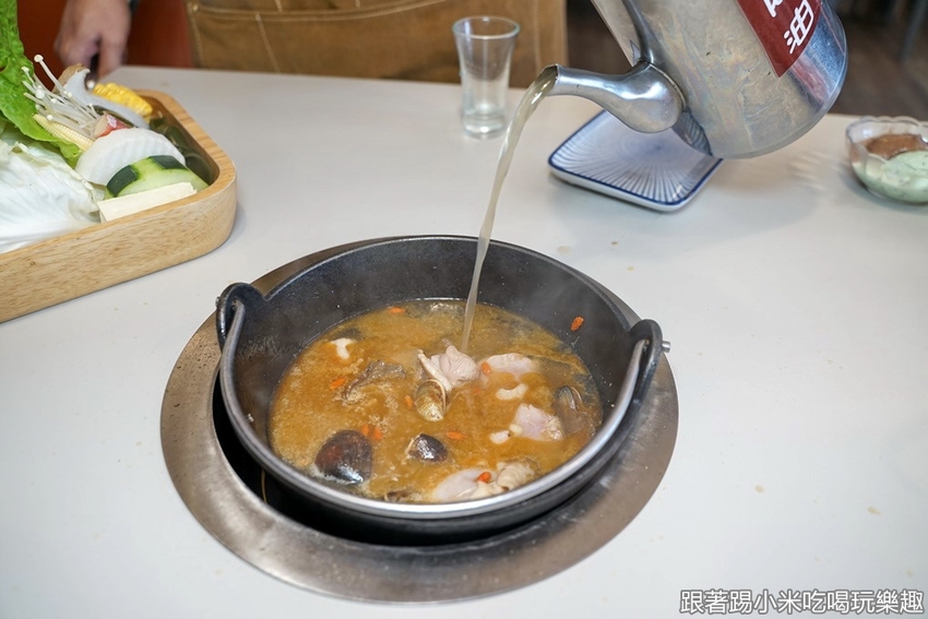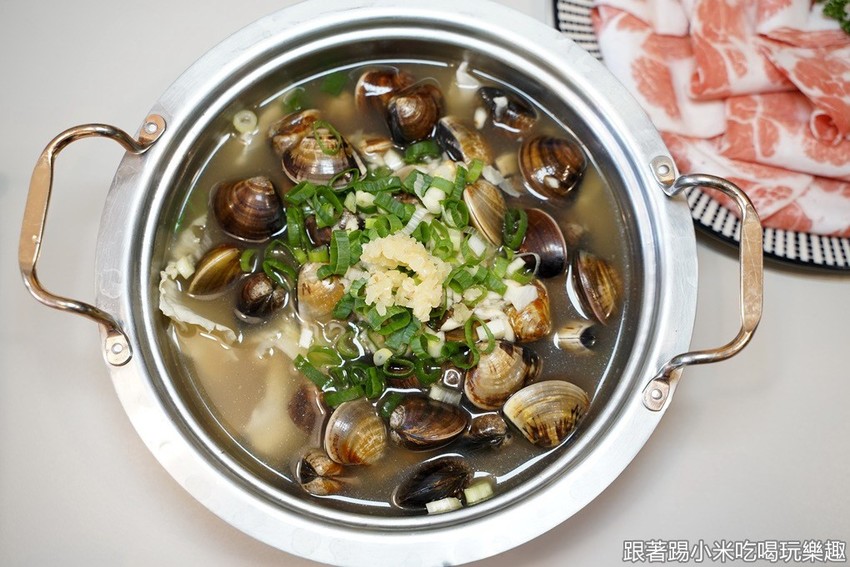 喜歡吃蛤蜊的朋友,只要加99元就有滿滿的1斤蛤蜊,搭上大骨清湯、蒜頭及青蔥,非常清甜美味的啵啵蛤蜊鍋!