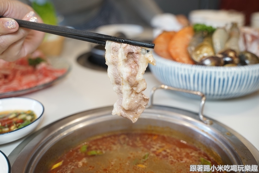 不吃牛的朋友,也可以嚐試看看單點精選梅花豬(98元),也蠻適合涮麻油雞的,變成麻油豬囉!
