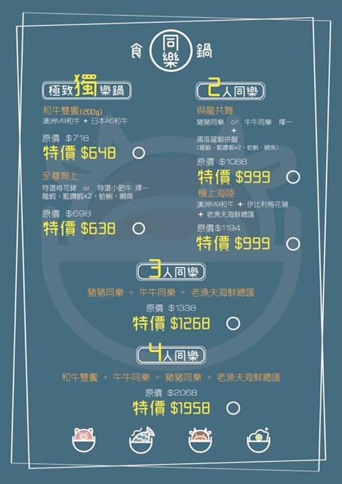 當然還有極致獨樂鍋、三人及四人同樂也都可以參考看看喔!