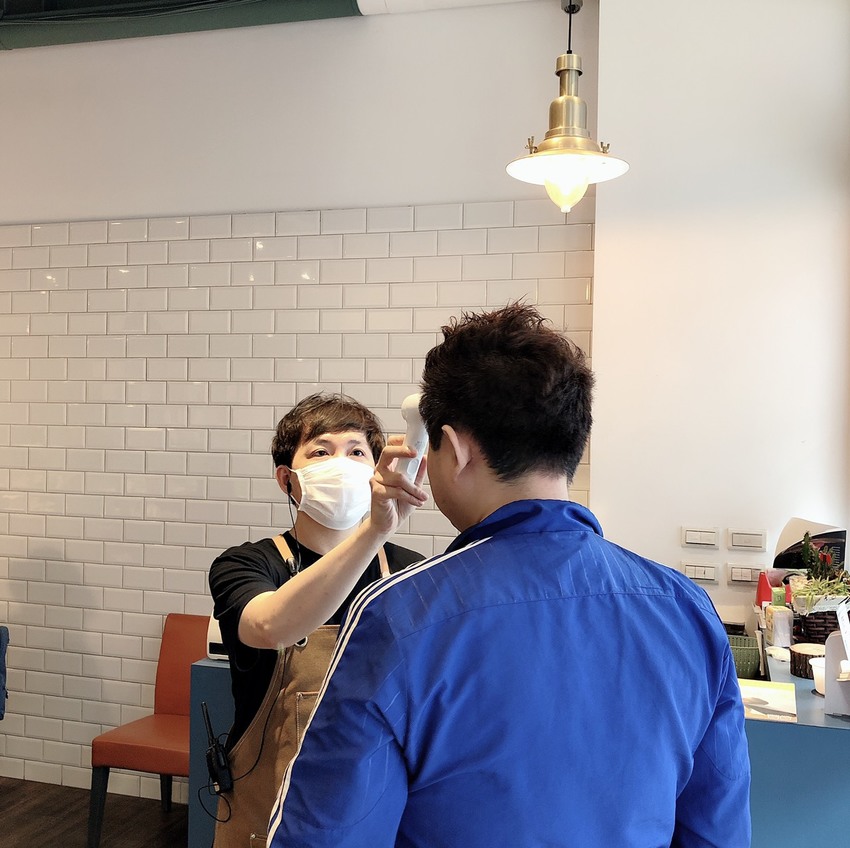 2.內外場服務人員均配戴口罩,並於上班前量測體溫。