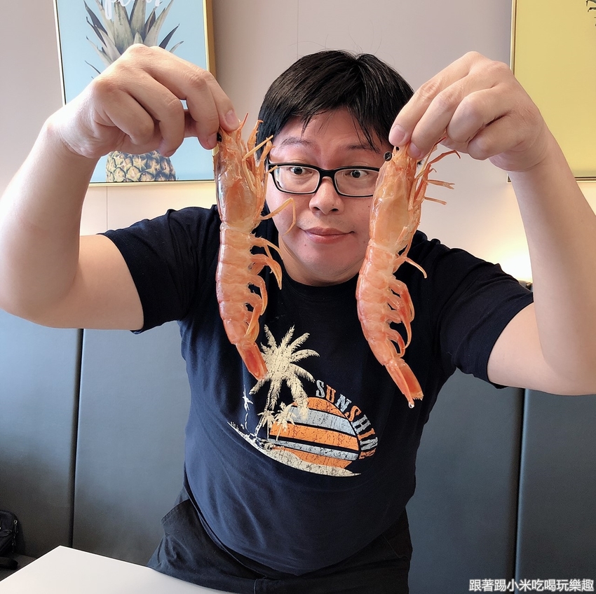 藍鑽蝦也還蠻大隻的,一樣由剝蝦高手魚兒出場,剝起來真的很漂亮!蝦肉是有彈牙的鮮甜口感,海鮮類提供的品質都很不錯,鮮度十足,喜歡吃海鮮及肉肉的朋友來這邊肯定沒錯