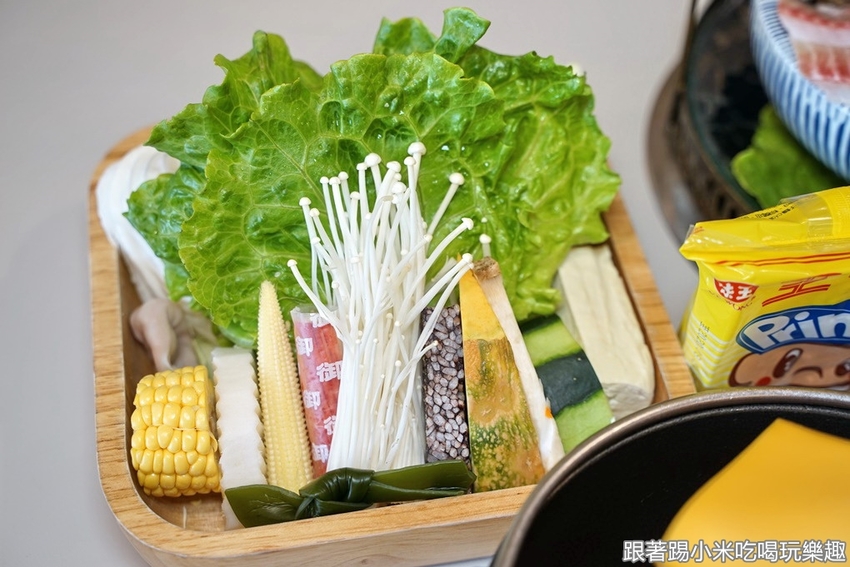 菜盤的蔬菜及火鍋料,總共有13種的食材,認真吃完應該也半飽囉!