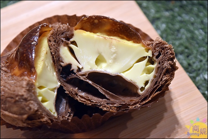 這個口味是最經典也是最受歡迎的原味蛋塔。常溫吃可以吃到256層酥皮酥脆的口感,我把一半冰冰箱再吃,外皮變得比較紮實,內餡真的有冰淇淋口感好神奇啊~超好吃!!