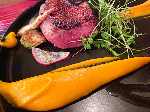 👉嫩煎櫻桃鴨胸佐辣巧克力醬$680