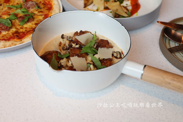 主廚拿手的法國家鄉味,手法調味來自法國奶奶的傳承,以4成台灣黑毛豬菲力與6成豬肩肉為比例自製的手工香腸,不容錯過這道富有南法普羅旺斯風情"肉食主義披薩"