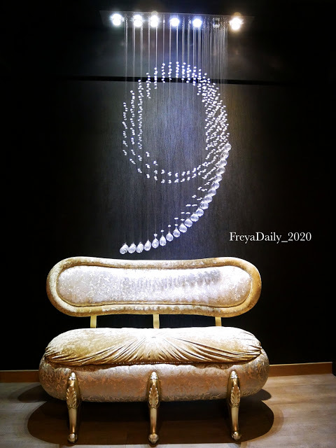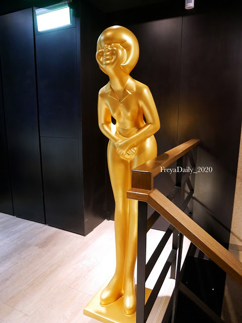上樓會看到金色的接待人像,有些趣味感,兩層樓的牆面「9」,在燈光落下的投射中,讓人有鑽石的感覺。