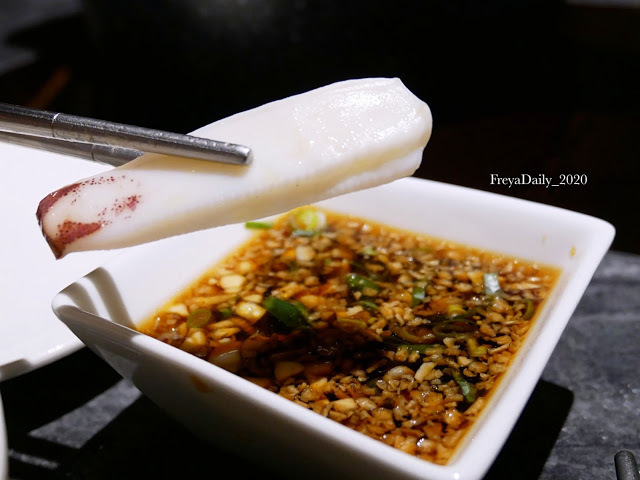差點忘記醬料,醬料裡面有加蔥花、蒜頭和蒜酥,是加過雞湯特製的醬油,吃起來真的不太像醬油;食材經過雙膠湯煮後,味道已經很足夠了,幾乎沒有沾醬。