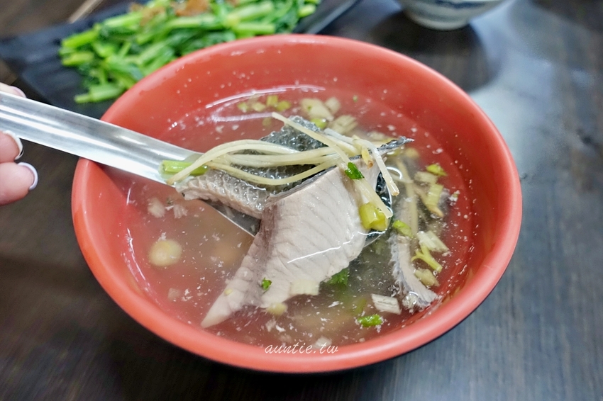 魚皮切得很厚,湯頭鮮美,加了薑絲,喝完魚皮湯加上螃蟹粥後,血液循環加速,超熱啊!
