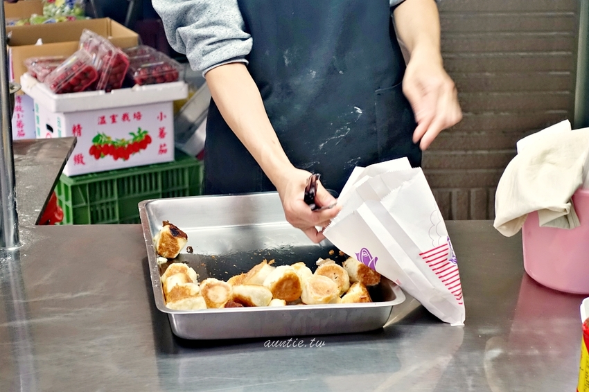 這家水煎包一粒六元,都是小小顆的,只有一種口味。現包現煎生意太好要排隊,有時候還要等出爐,拿到都是熱騰騰的。