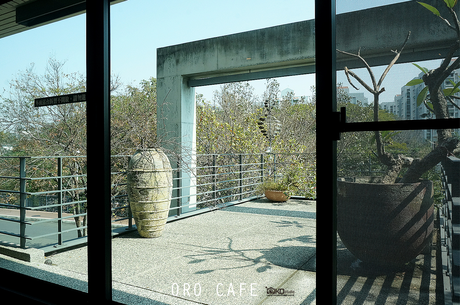 ORO其實比較像是台中的咖啡店,現代、明亮、寬敞還有兩面牆高度挑高到二樓的書櫃,或許你也跟我一樣想過,最高那幾層的書會否有人認真的爬上了梯,看一看被束之高閣的讀物有什麼特別之處,但那大多是厚重的叢書吧。室內的空間分為一樓與二樓,設計氛圍並無太大差異,從一樓入口處的右手邊便是通往二樓的樓梯,明亮的可以看見鄰近的一方水池,閃爍著點點光芒,是南臺灣特有的光線。