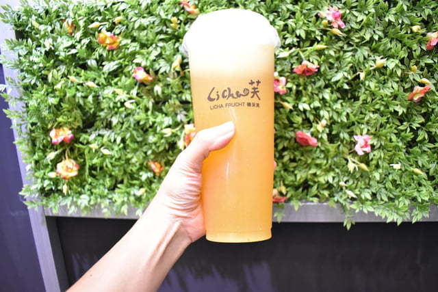 ●菓然梨不開,配合政府減塑計畫,使用開口即飲的杯蓋,方便飲用之餘,同時提倡環保概念。