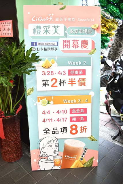 ●「禮采芙-永安市場店」才剛開幕沒多久,開幕彩球以及開幕活動布條,增添不少熱鬧氣氛。