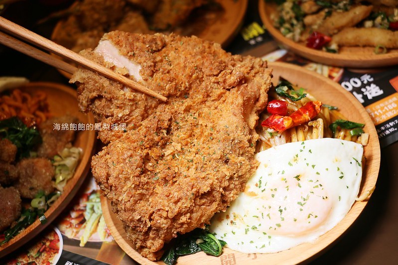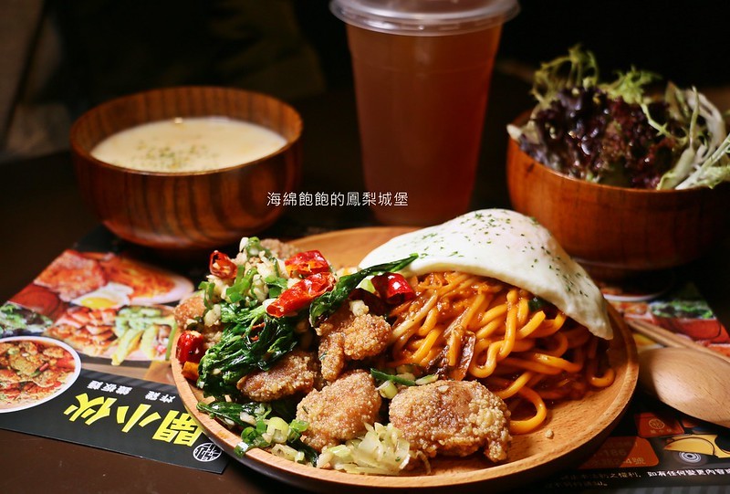 鹽酥雞搭配鐵板麵,加一顆半熟太陽蛋