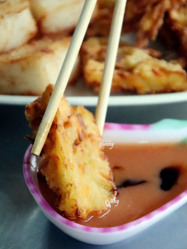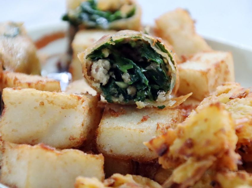 評比第二名就是這個蘿蔔糕,這切成一口大小的蘿蔔糕,每一面都炸得赤香,邊邊角角更是酥脆,令人顧不得燙口,一直往嘴巴送。