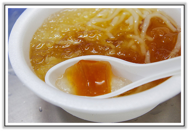 不知道是不是要收攤的關係我們每兩匙就可以吃到粉粿,
