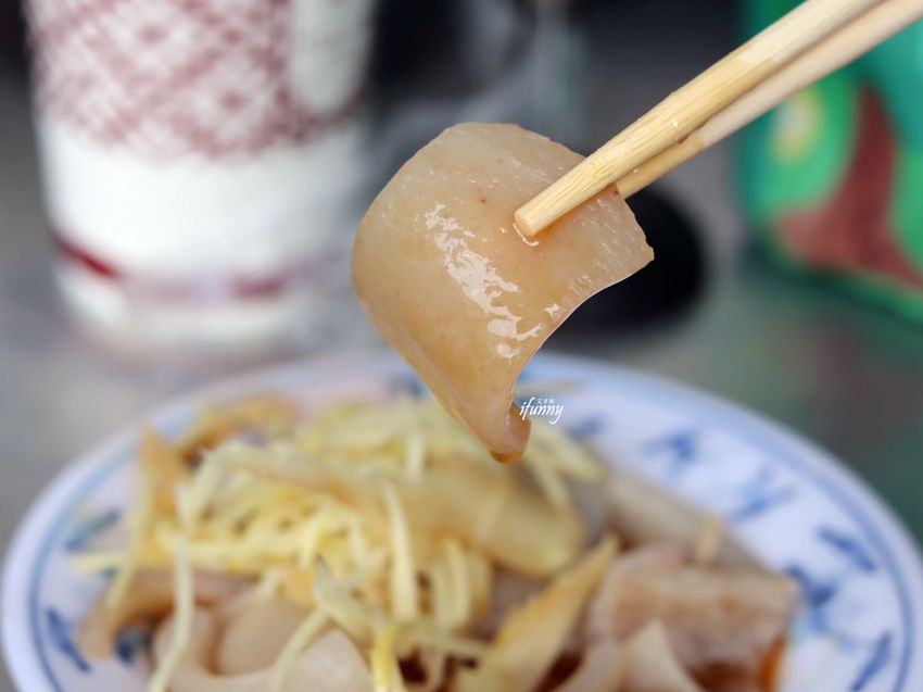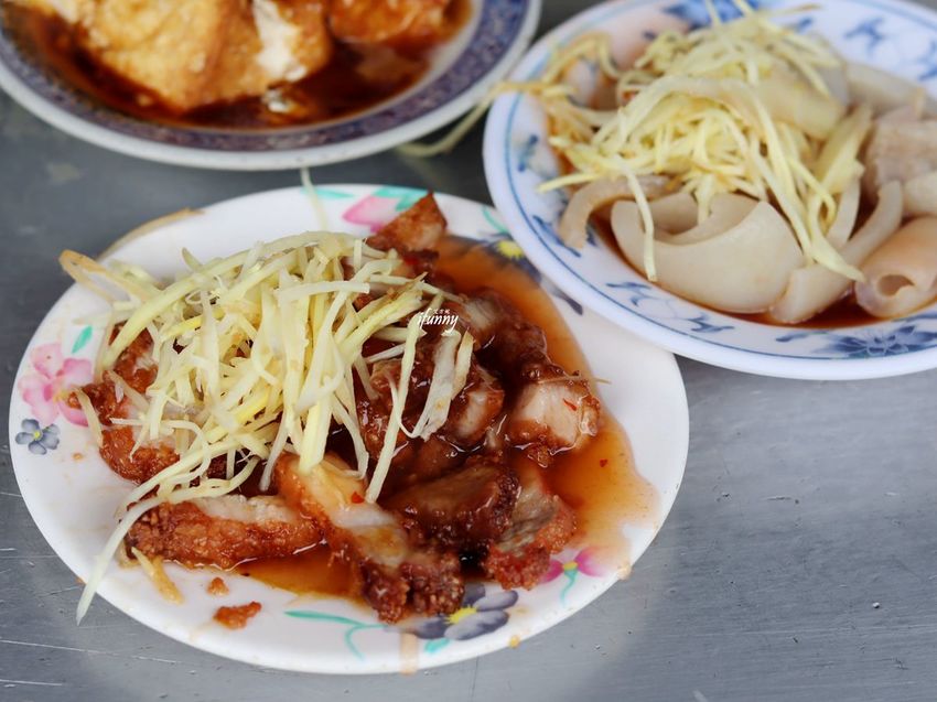 這是唯一的非炸物,豬皮處理得非常地乾淨,煮的熟度也恰到好處,搭配薑絲就是經典的美味。