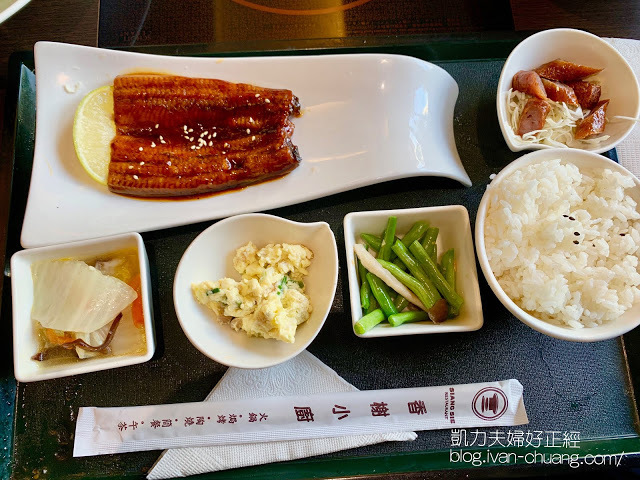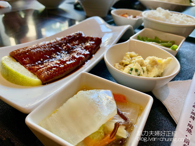 老實說吃完的心得是,不推。這裡的烤鰻飯跟日本口味差太多了,口感不佳。不過其他的配菜、米飯都還算不錯。之間凱伊凡有點過這裡的泰式檸檬魚、照燒松阪豬簡餐,都相當不錯,不過當時凱伊凡沒有拍照的習慣,都已經吃下肚了,請大家見諒>"<