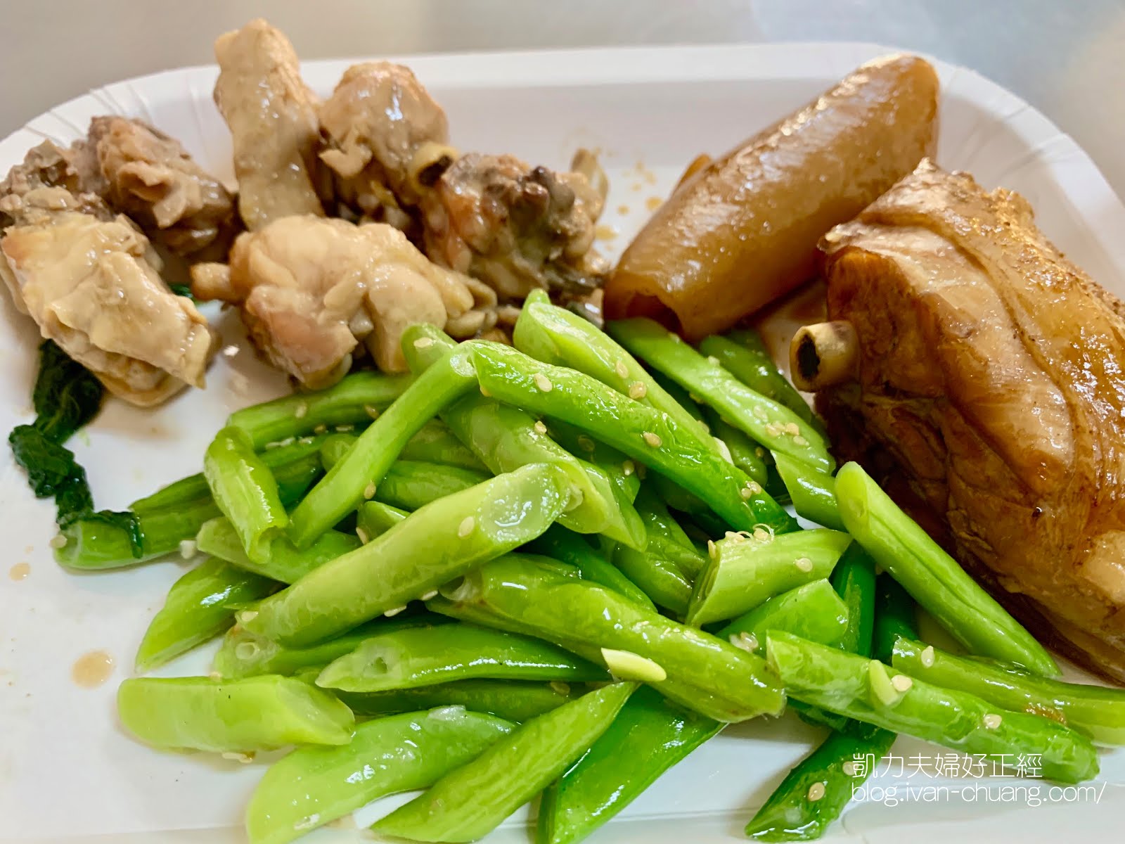 外帶的菜色一道主菜,兩樣蔬菜加一顆滷蛋,才60元。這個菜量在一般小吃店點起來就要50元了。這邊也可以外帶或者是外送,阿姨們可以配合的彈性很大,你可以外送直接跟他要求要幾樣菜、要什麼肉,加顆滷蛋之類的要求,或者是便當飯只要少量,他們都可以配合。有時候有選擇困難症發作的時候,你也可以用金額來訂,例如選擇50/60/70/80元等等的便當,讓阿姨們幫你配好送到你手上,絕對每一次吃都是驚喜拉XD