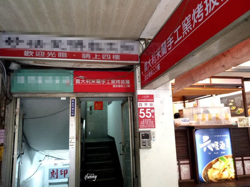 義大利米蘭手工窯烤披薩位處四平商圈的二樓,由捷運松江南京站7號出口走來,約3分鐘即可抵達。相當低調的門面,大家要認好紅底白字的招牌,接著走上二樓即可喔!