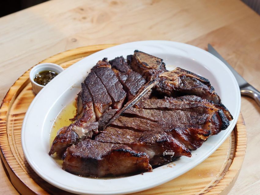這塊厚實的美國Prime級丁骨牛排,卻有這樣漂亮的價錢,重點是完全是水準之上的滋味。丁骨牛排在有些餐廳,會稱為紅屋牛排,主要就是在丁骨的兩側是兩種不同的肉質,其一是紐約克,另外就是許多人喜愛的菲力了!