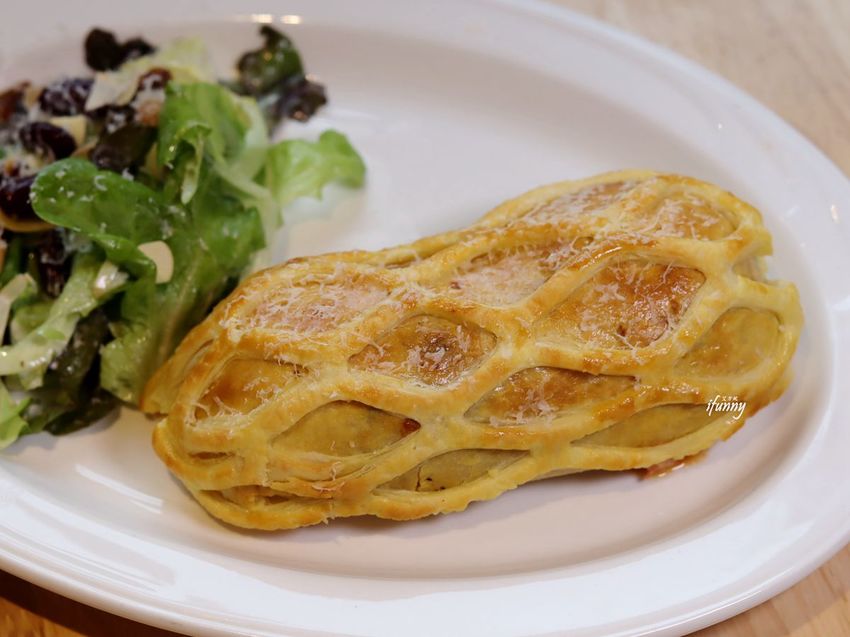 西餐中有一個經典的料理-威靈頓牛排,而江哥因應現今外送外帶的盛行時期,為了讓客人也能在家品嚐牛肉的美好,因而創新研發的餐點。