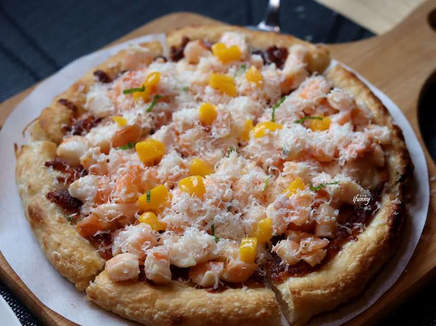 艾方妮吃過義大利米蘭手工窯烤披薩的披薩口味,甜鹹加起來至少有30種了!而這道韃靼蝦披薩,肯定是回點率很高的口味。