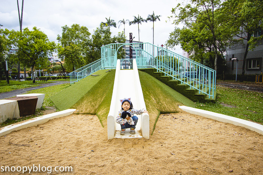 去年2019年園區內將原本罐頭兒童遊具改成了山丘造型的溜滑梯與沙坑,