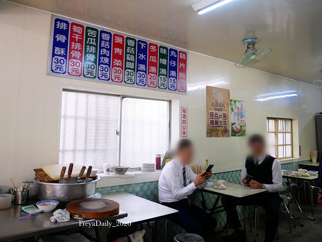 阿溪的菜單很簡單,除了魯肉飯、雞肉飯、雞片飯,還有一些小菜和湯品,比較多人會點的是雞片飯和荷包蛋(鴨蛋),當天用餐的時候兩種都賣完了,因此選了雞肉飯、滷豆腐、筍絲和貢丸湯。
