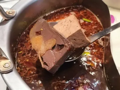 誰說麻辣鴛鴦鍋吃到飽的湯頭就是隨便用?椒心苑麻辣鍋直接顛覆你對於麻辣火鍋吃到飽湯底的刻板印象,直接用麻辣火鍋單點店的規格來熬煮這紅白鴛鴦鍋湯底,紅湯麻辣鍋是用以牛大骨燉煮的湯當底,再加入大紅袍花椒及數種中藥材去調配味道,有些麻辣鍋吃完後,連嘴唇都會覺得麻麻辣辣的,但椒心苑麻辣鍋麻辣湯不會,喝起來算是溫馴的,有麻有辣,卻不會直衝到讓人受不了,這種辣度很適合家庭一起來吃,當然裡面還有鴨血跟豆腐免費續加,鴨血與豆腐口感上都還不錯,味道上算適中,沒有那種煮到很鹹那種味道還行。