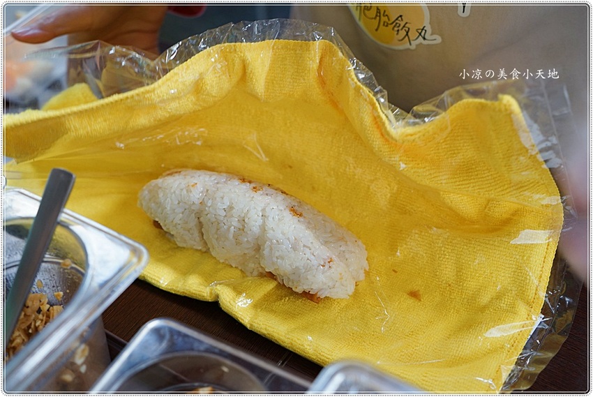 對切後更顯食材的豐富,小凉特愛這種內餡飽滿、米飯嘟嘟好的飯丸,一般外面的飯糰有些米飯多於配料><