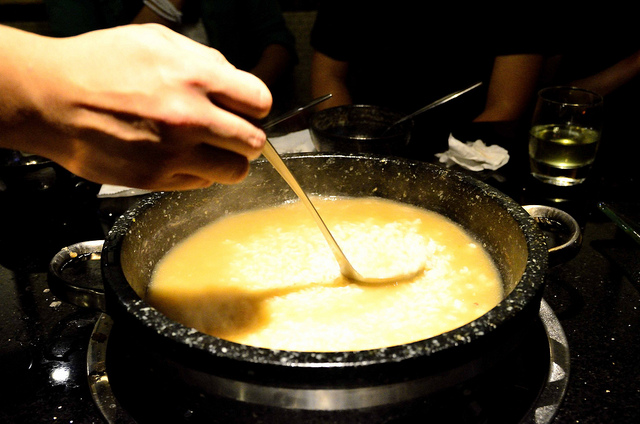 打個蛋花,熱騰騰香噴噴的"黃金稀飯"就完成了!