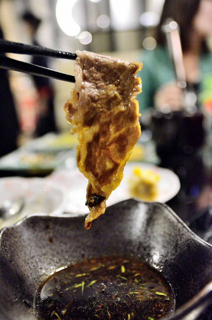 輕涮個5秒後,沾一點店家特製酸桔醬