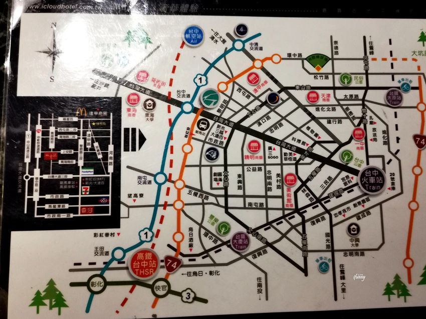 雲河概念旅館在房間裡備有旅店附近的景點,無論購物、美食或文化藝術等,都可以完全滿足。
