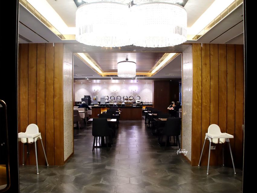 二樓的電梯一開門,就是寬闊的餐廳。疫情期間請大家配合量體溫及酒精消毒。