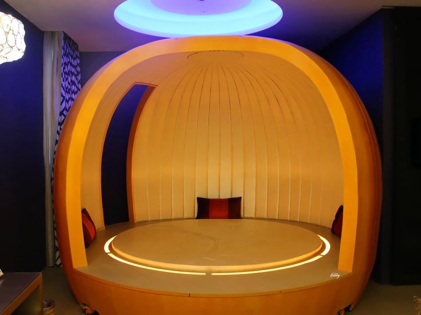 有如太陽光芒四射的牆面,還有氣宇非凡的樑柱,令人彷彿走進埃及王子的皇宮,感受到皇室的尊貴感。