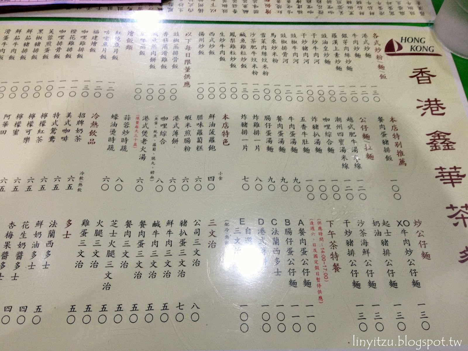 某次搭計程車回公司,司機講到「鑫華茶餐廳」的奶茶是他此生最愛的奶茶。他說得天花亂墜,而天花也不免墜了些在我心裡(畢竟車內空間狹小我躲不掉),總算在今天中午慫恿同事來這邊吃午餐。